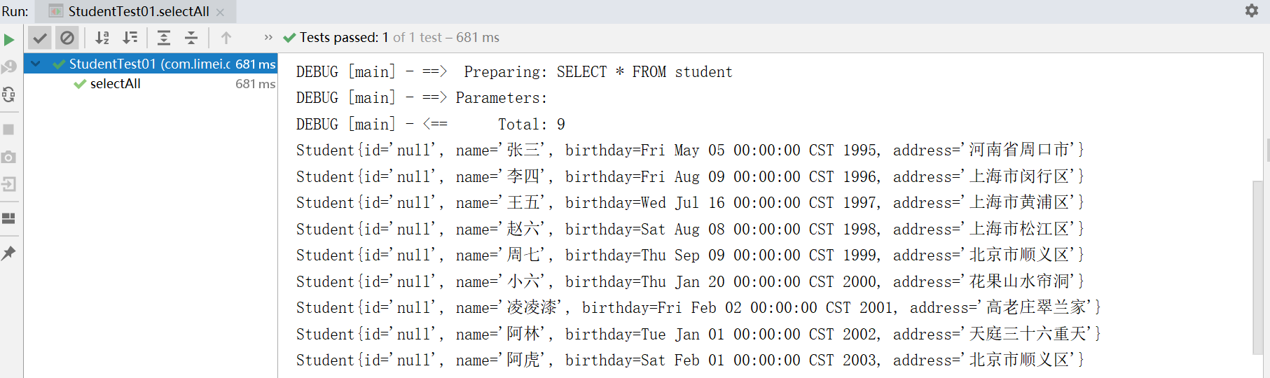 List<Student> list = sqlSession.selectList("StudentMapper.selectAll");